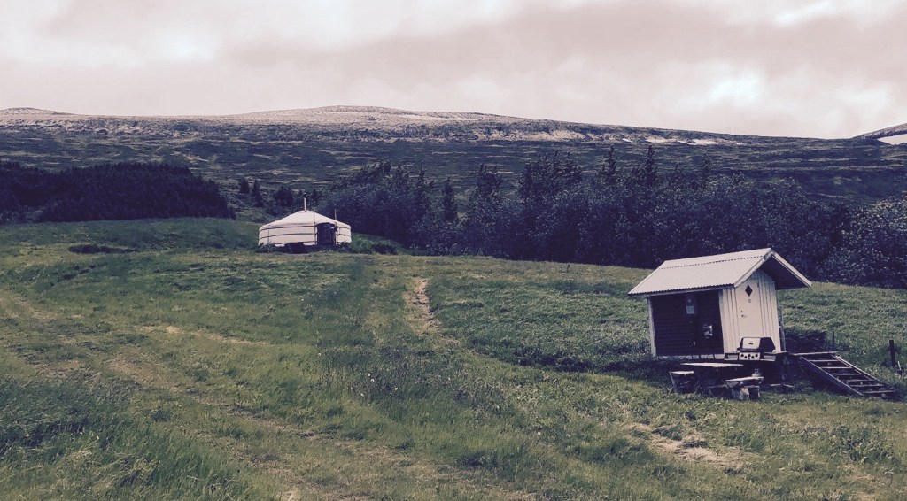 We stayed for two nights Akureyri in a yurt, set against the backdrop of a snow-covered 1000m high mountain, with views of the airport across the river and directly beneath us.